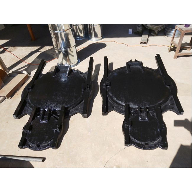 鑄鐵閘門一般設置有可調節的楔緊裝置,楔緊副(如楔塊與楔塊、楔塊與偏心銷等)分別設在門體和門框上。調節楔緊裝置,可使得閘門關閉時門體緊貼門框,達到止水要求。